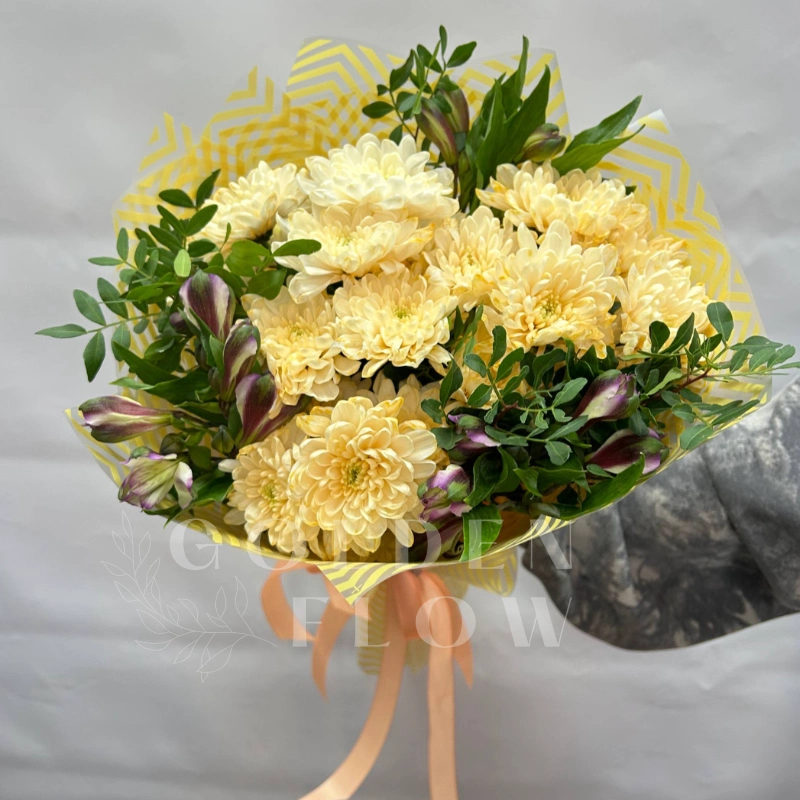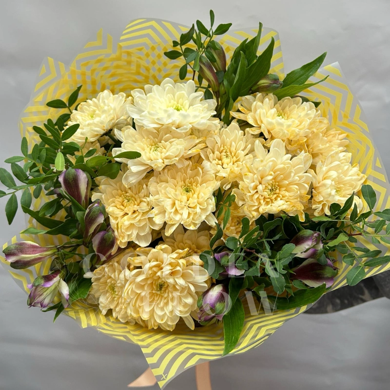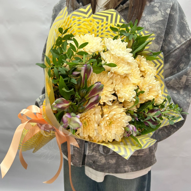 Букет из хризантем и альстромерии «Незнакомка»