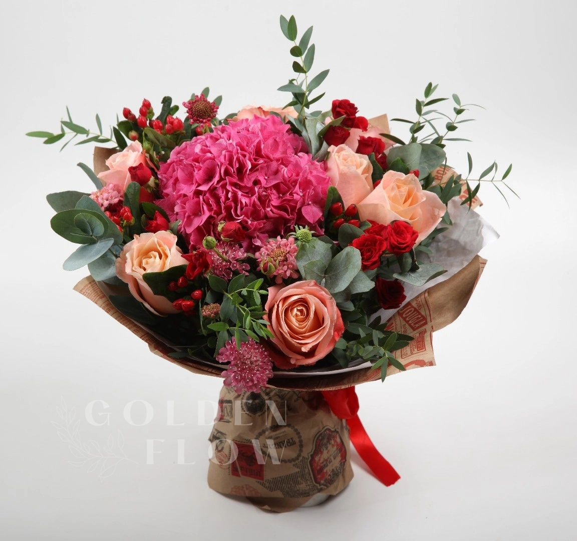 ГлавнаяКаталогБукетыБукет с розами и гортензией