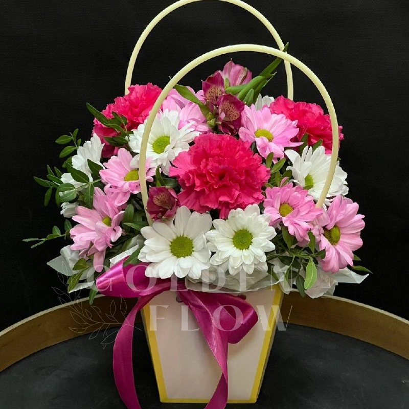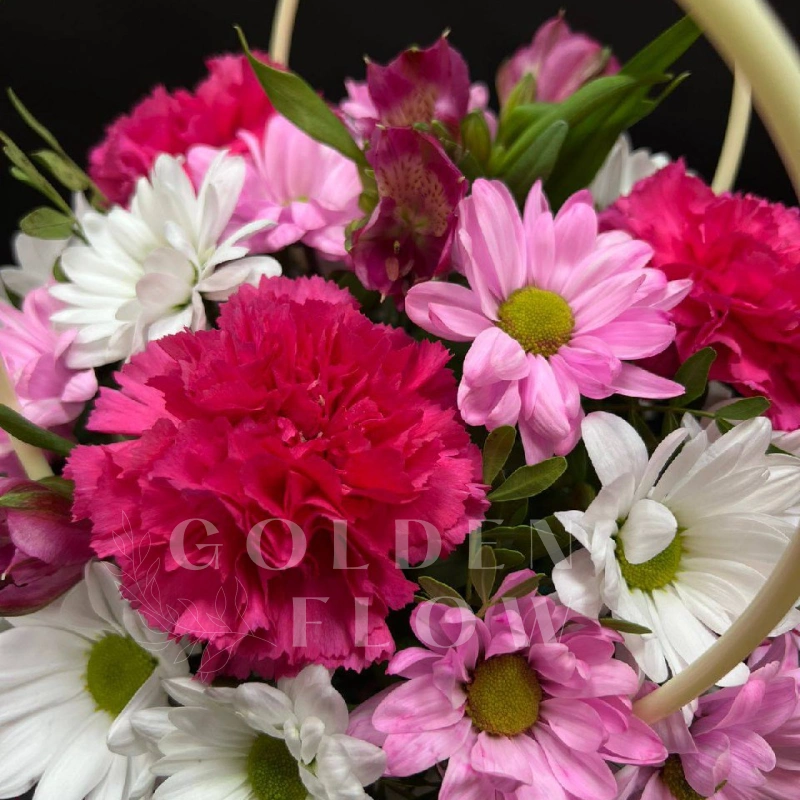 Композия «Малиновая» отличается яркостью и эффектностью и насыщенными оттенками. В ее составе сочетаются изящные и нежные диантусы, объемные кустовые хризантемы и элегантные альстромерии. Эта гармоничная смесь создает ощущение свежести и радости. Каждый цвет добавляет своей особенной красоты и выразительности. Букет идеально подойдет для создания праздничного настроения и подчеркивает индивидуальность его обладателя.