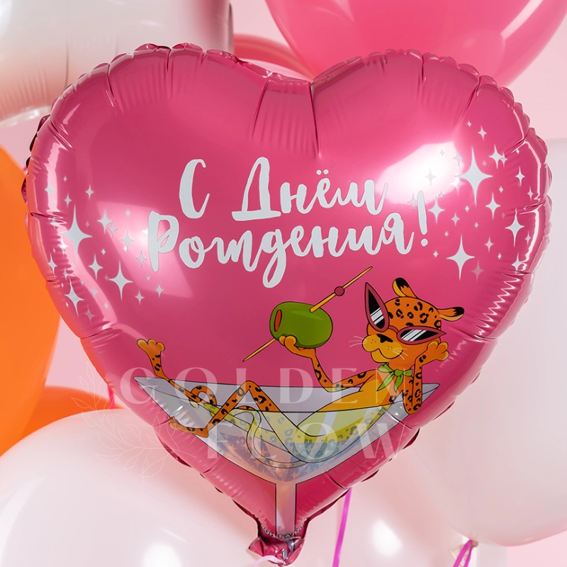 Шар Сердце, «С Днем Рождения! (леопард в бокале)»