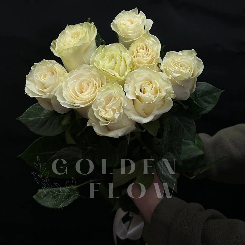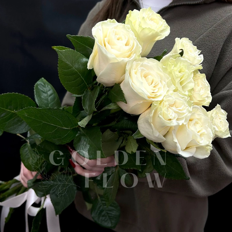 ГлавнаяКаталогРозыБукет из 9 белых роз под ленту