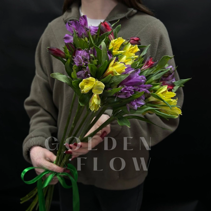 ГлавнаяКаталогБукетыБукет из 9 альстромерий под ленту
