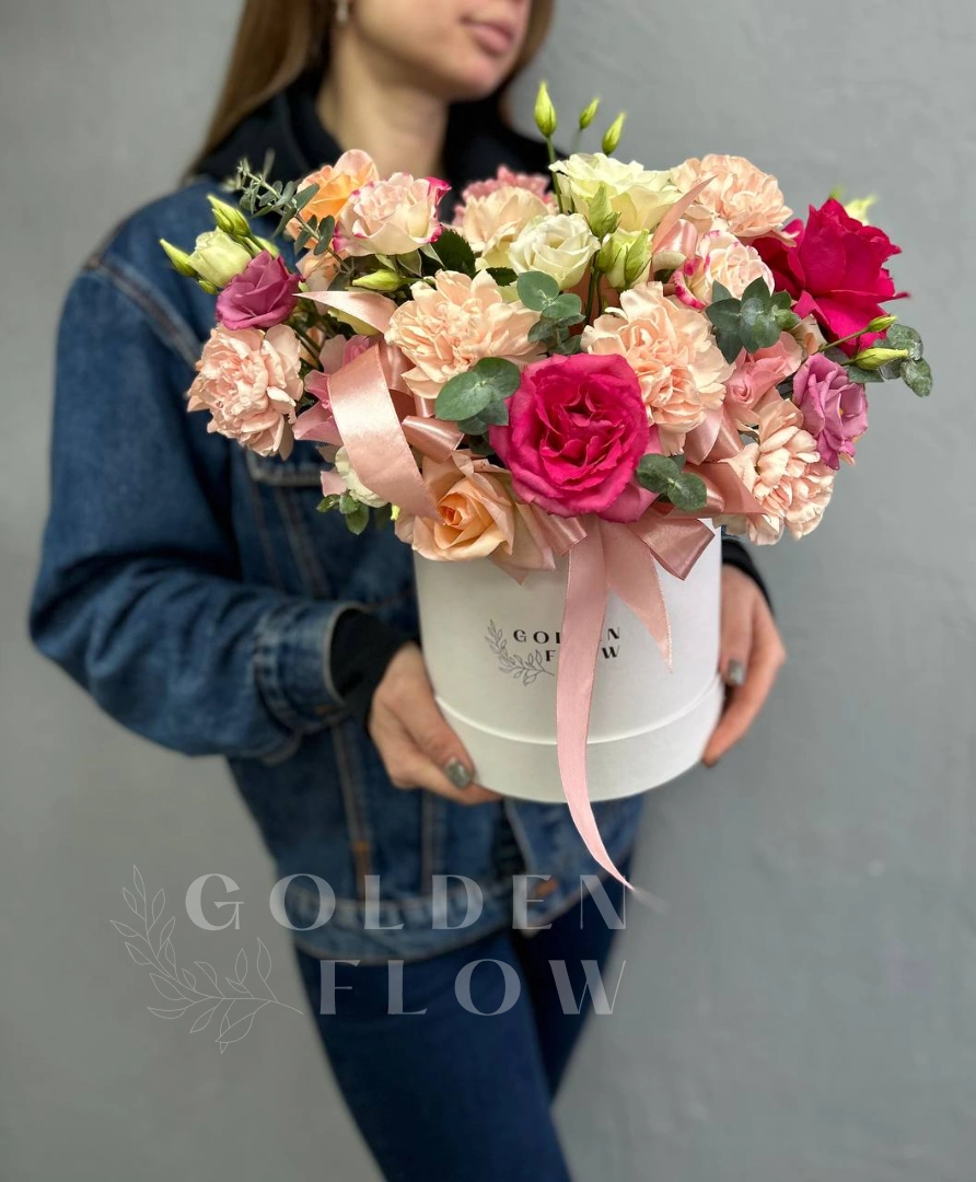 ГлавнаяКаталогКомпозицииКомпозиция в коробке «Персиковый йогурт»