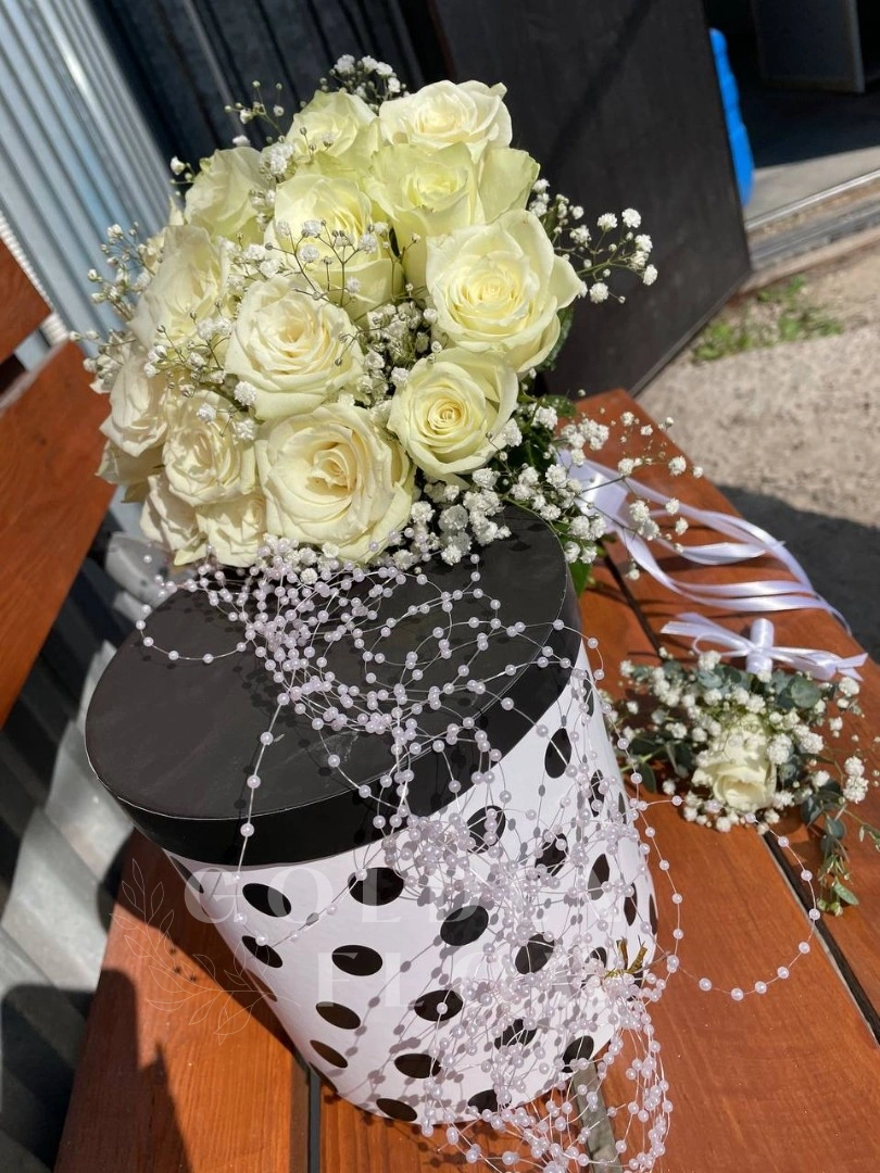 ГлавнаяКаталогРозыСвадебный букет из белых роз